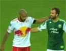 Tiền đạo của Red Bull tiến lại gần hậu vệ Adam Moffat của Timbers nói điều gì đó rồi vỗ hơi mạnh vào đầu đối thủ. Moffat phản ứng lại bằng cách xô nhẹ Henry. Dù không có gì nghiêm trọng và cả hai sau đó đã sớm tự giảng hòa, họ vẫn bị các trọng tài trừng phạt. Sau khi tham khảo ý kiến của một trợ lý, trọng tài chính đã rút thẻ đỏ trực tiếp phạt Henry và thẻ vàng cảnh cáo Moffat.