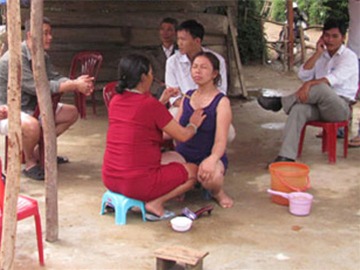 "Phật" đang chữa vô sinh cho một phụ nữ tại xă Hưng Trạch bằng nước phép