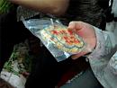 Bỏ đi trong cái liếc xéo của chị chủ hàng, chúng tôi đi sang quán thuốc thứ 2 ngay gần đó. Vừa thấy khách hàng nhắc đến nhau thai khô, dứt lời, người bán hàng lấy trong kho ra một gói nilon h́nh vuông, trên bao b́ chỉ vẻn vẹn ghi 10 chữ Trung Quốc đỏ chót mà không có bất kỳ thông tin về thành phần, hạn sử dụng và tác dụng của vị thuốc này bằng tiếng Việt.