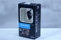 Tai nghe không dây với thiết kế nhỏ gọn. Nút nguồn nằm ở chính giữa và có logo Sennheiser. Sát bên dưới là đèn LED báo tín hiệu.