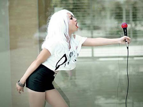 Phương My - một trong những nhân vật được xem là “thảm họa” của showbiz Việt đang bắt chước phong cách của Lady Gaga. Ảnh: Internet