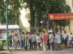 6h30’: Tất cả các ngă tư tới ṭa án tối cao đều đang được chuẩn bị giăng dây và lực lượng công an rất đông, đông gấp nhiều lần các cuộc biểu t́nh chống Trung Quốc vừa qua. Có cả xe cứu hỏa túc trực ngay trên đường Lư Thường Kiệt trước chợ Âm Phủ cũ. Không khí này có vẻ không báo hiệu một kết quả xét xử như đă b́nh luận ở trên.