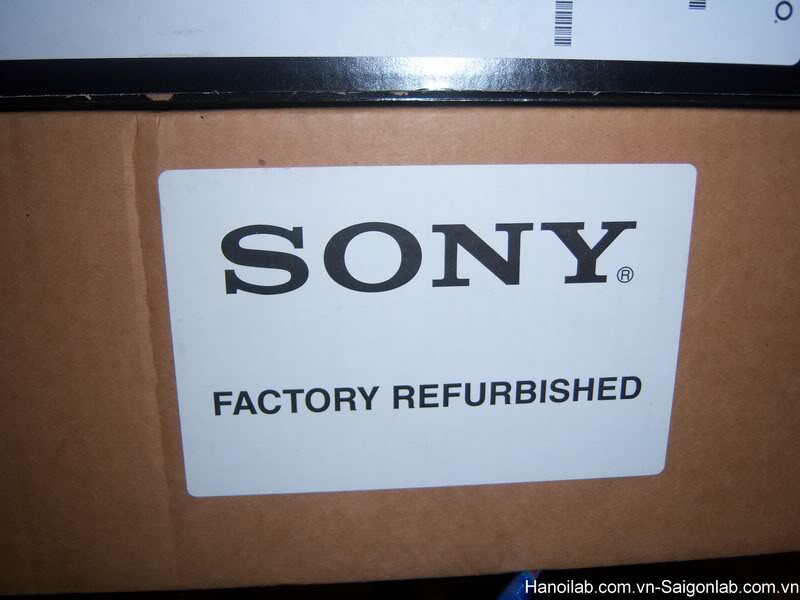 Còn đối với Sony hàng refurbished thì thùng catong mầu vàng to vuông và có in rất rõ chữ refurbished và ngoài thùng dán băng keo trong rất đơn giản ngoài thùng