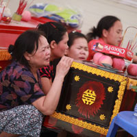 Rất đông người thân và làng xóm đến tiếc thương chia buồn với gia đình nạn nhân.