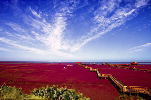 Mời các bạn ngắm khung cảnh đầm cỏ nước rực đỏ, ảnh trên trang Travel China: