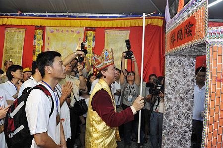 Thầy Kek (áo vàng) mở cửa cơi âm. Ảnh: Chilli