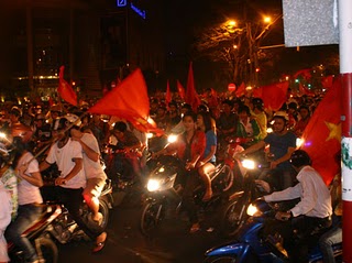 Bây giờ lo thật, mùa SEAGAME tới đây nhỡ như đội tuyển bóng đá VN vô địch thì sẽ không còn được tụ tập đông người nữa. TP HCM cấm tiệt, Hà Nội cũng ra văn bản cấm tụ tập đông người, và cả ông thứ trưởng quốc phòng Nguyễn Chí Vịnh cũng qua cam kết với Trung Quốc rằng dứt khoát không cho tái diễn cảnh tụ tập đông người nữa. Khổ thật.