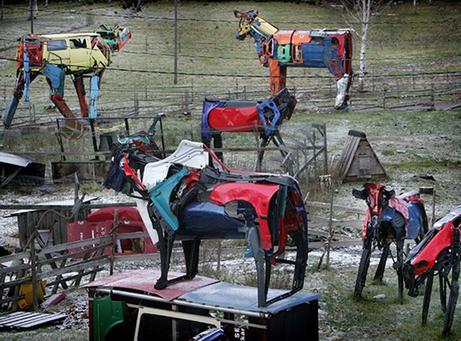 Thông qua bàn tay kỳ ảo và trí tưởng tượng cực kỳ phong phú, Miina Äkkijyrkkä đã tái sinh những chiếc xe cũ nát dưới hình dạng của những chú bò khổng lồ và đem chúng trưng bày tại trang trại của chính mình.