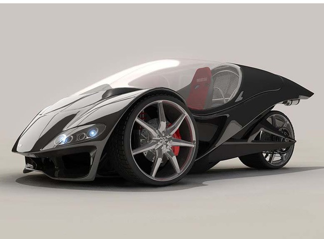 Alex Hodge, một sinh viên thiết kế công nghiệp tại New Zealand đă sử dụng động cơ của chiếc Honda PC51, vốn là một mẫu xe đua thương mại có dung tích xy lanh 1.000cc với 120 sức ngựa và có tốc độ tối đa 230km/h, để tạo ra một mẫu siêu xe ba bánh ấn tượng.