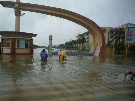 Toàn bộ khu vực cổng trước trường mênh mông nước