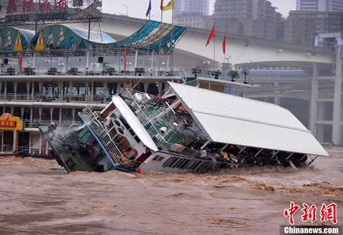 Nhà hàng nổi đă bị lật sau khi va chạm với một con tàu khác ở sông Jialing, thành phố Trùng Khánh. Vụ va chạm diễn ra sau khi dây cáp của con tàu này bị đứt do áp lực nước chảy quá mạnh. Tất cả 11 người trên tàu đều bị ngă xuống nước, nhưng rất may đều đă được cứu sống vào buổi tối.