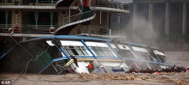 Đây là khoảnh khắc kinh hăi khi một chiếc tàu chở khách lật nhào sau khi bị đâm vào một chiếc thuyền nhà hàng đang hoạt động trên sông Jialing bị ngập lụt ở phía tây nam Trùng Khánh, Trung Quốc. Trong khi đó, người dân Nhật Bản cũng đang hứng chịu băo mạnh.