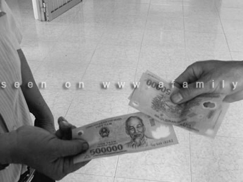 Một thành viên diễn đàn khác chia sẻ câu chuyện xảy ra vừa xong tầm 16h30p tại trục Đường Láng gần Ngă tư Láng Hạ: “Ḿnh và vợ đang đi đường dừng nghe điện thoại cách đèn đỏ tầm 30m. Có 2 Tây kiểu balo ra hỏi đổi tờ 500k. 1 anh Tây ra sát xe ḿnh hỏi, 1 anh đứng trên xe cách tẩm 2m phía sau xe. Nói tiếng Anh hỏi đổi 500k tiền lẻ, ḿnh rút tiền ra đổi cho 5 tờ 100k trong lúc đấy tên ngồi trên xe cứ gọi ḿnh ra. Ḿnh đưa hết tập tiền của ḿnh cho vợ rồi chạy ra xem tên đó kia hỏi ǵ. Ḿnh ra chỗ đậu xe th́ hắn ta hỏi 1$ đổi được bao nhiêu tiền VNĐ. và đổi ở đâu, trong lúc đó thằng đứng cạnh xe ḿnh đang đứng với vợ đ̣i đổi tiền lẻ hơn, đ̣i cầm tiền để chỉ cần những tờ nào. Hắn cầm đếm đếm mấy tờ 500k đảo đảo mấy phát rồi trả tiền cho vợ ḿnh xong nhảy lên xe đi luôn.Thấy chúng phóng vụt đi thấy nghi nghi bảo vợ đếm lại tiền. Tổng cộng tiền ḿnh cầm theo người là 10,5tr, đếm lại c̣n có 7,5tr mất luôn 6 tờ 500k. Quay ra nh́n th́ 2 tên đó đă mất hút trong ṿng 5 giây”