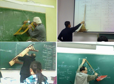 Thầy giáo dùng ghế, chổi, hót rác làm thước kẻ hay ngồi thiền khi dạy học, cô giáo thoải mái ăn quà vặt khi giảng bài, là những hình ảnh vui nhộn của giáo viên.
