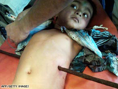 Bé Mehul Kumar bị thanh sắt đâm xuyên bụng.