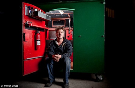 Một nhà thiết kế “lập dị" người Mỹ đã biến chiếc xe đổ rác thành một ngôi nhà tiện nghi với nhà vệ sinh, phòng khách, nhà bếp và nhà tắm vòi hoa sen.