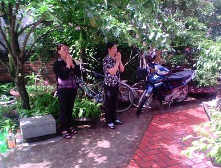 Không được lên tầng trên gặp "người giời", mọi người chỉ còn cách bái vọng từ sân, vườn.