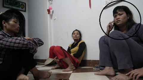 Chị Vinh “gà” thẫn thờ ngồi bên các chủ nợ.