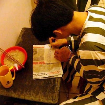 Tử tù Vũ Xuân Trường làm thủ tục trước khi ra pháp trường. Ảnh: Nguyễn Như Phong. |