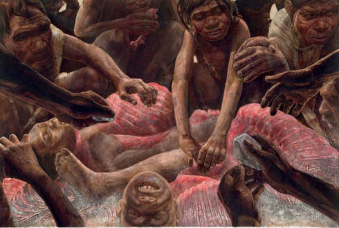 | Tranh mô tả cảnh ăn thịt người thời xưa ở châu Âu. |