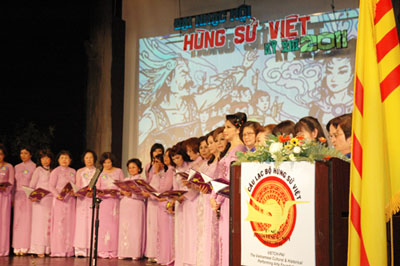 Ban hợp ca CLB Hùng Sử Việt với bài “Lời Mẹ Âu Cơ”. (Hình: Ðỗ Dzũng/Người Việt)