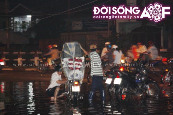 Tại đường Phan Đình Phùng, đoạn dưới chân cầu Kiệu đến đường Huỳnh Văn Bánh (quận Phú Nhuận) bị biến thành sông. Nguy hiểm nhất, nhiều trường hợp do không thấy đường đi nên "lọt" vào hố công trình đang thi công và những chỗ nước sâu. Hàng loạt xe chết máy phải dắt bộ do nước vào ống bô.