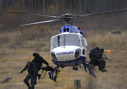 Lực lượng đặc nhiệm Nga đột nhập từ trên nóc nhà với sự trợ giúp của trực thăng AS-355.