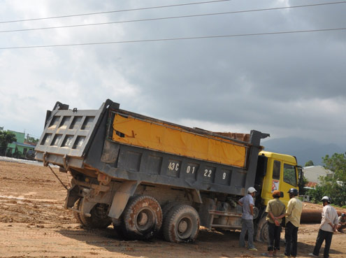 Vào khoảng 11 giờ trưa 31.10, tài xế Nguyễn Công Danh (26 tuổi, trú xã Đại Đồng, H.Đại Lộc, Quảng Nam) điều khiển xe ben BKS 43C-012.29 của Công ty CP 56 chở đất cho công trình Khu tái định cư Hòa Liên 4.