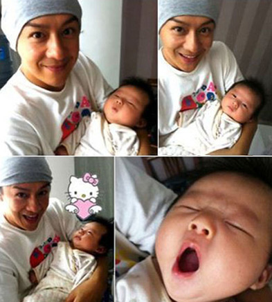 Người hâm mộ tò mò trước hình ảnh chàng tài tử Hong Kong âu yếm ẵm một cậu bé mũm mĩm trên tay và nở nụ cười rạng rỡ.
