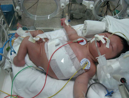 Bé Luyền nhập viện cuối tháng 9, khi mới 25 ngày tuổi. Lúc sinh ra bé khá yếu, có tới 4 tay, chân trái bị teo cong do dị tật thai ký sinh. Ca phẫu thuật cho bé được tiến hành đầu tháng 10 gặp trở ngại bởi phát sinh sự cố dính ruột, song vẫn thành công. Trường hợp bé Luyền rất hiếm gặp, tỉ lệ là 1/50.000.