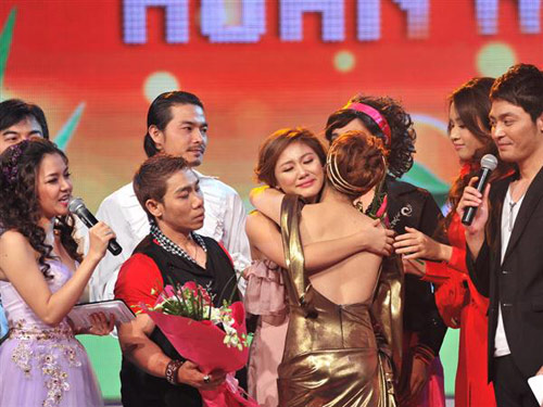 Ngọc Anh an ủi và ôm Văn Mai Hương khi cô phải rời chương tŕnh (Ảnh: Lư Vơ Phú Hưng)