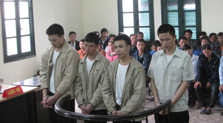 Sáng nay, ngày 23/11, TAND thành phố Hà Nội mở phiên tòa xét xử vụ án giết người xảy ra cách đây một năm tại huyện Sóc Sơn, Hà Nội. Bốn bị cáo dẫn nhau ra trước tòa gồm hai bố con Nguyễn Văn Luận, 39 tuổi-Nguyễn Văn Duy, 17 tuổi và hai anh em Nguyễn Tiến Chiên và Nguyễn Tiến Thuyên. Phiên tòa mãi mới diễn ra do trước đó chỉ có Duy bị truy tố về tội giết người, những bị cáo còn lại bị truy tố về tội gây rối trật tự công cộng. Tuy nhiên, đến giữa tháng 7 vừa qua, cả Luận, Chiên, Thuyên cùng bị truy tố tội danh giết người.