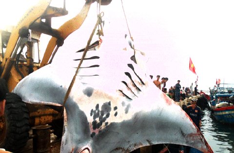 Con cá nạng nặng hơn 2 tấn (Ảnh: V.Minh)