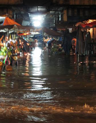 Nhiều tiếu thương khác cố bám trụ cho đến lúc triều cường rút xuống để buôn bán tiếp th́ phải sử dụng các biện pháp nhủ bỏ hàng hóa bào thùng xốp hoặc đưa lên nơi cao ráo cất giữ để tránh nước xâm nhập.