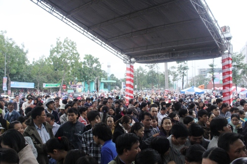 Gần 2 tiếng đồng hồ sau giờ khai trương, t́nh cảnh chen lấn mới giảm. Điều đáng nói bên cạnh sự hiếu kỳ của người dân phải kể đến nguyên nhân tổ chức không chặt chẽ, lường trước các t́nh huống phát sinh của ban tổ chức lễ khai trương.