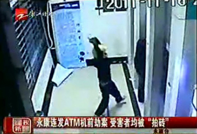 Cảnh sát Trung Quốc vừa tóm gọn tên cướp táo tợn chuyên đội mũ bảo hiểm và dùng gạch tấn công người sử máy ATM.