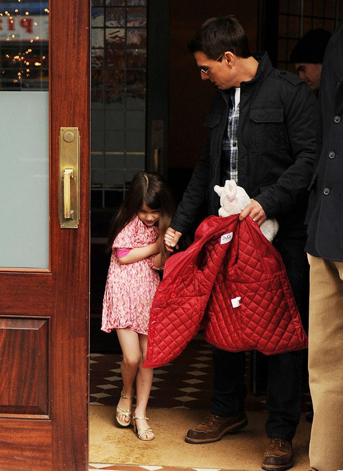 Tom Cruise đã bớt chút thời gian trong lịch trình dày đặc các sự kiện và công việc để dành thời gian cho Suri. Nhưng với một cô bé còn quá nhỏ, thì Suri chưa quen với những ống kính liên tục chĩa vào mình với những tiếng tách tách liên tục của những chiếc máy ảnh. khi cùng bố vừa ra khỏi căn hộ của NYC để đến Chelsea Piers.