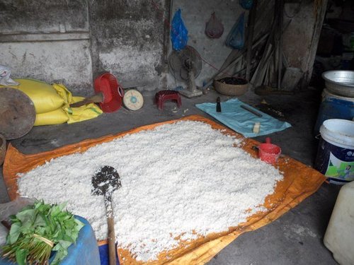 Cơm dùng để ủ men nấu rượu sau khi nấu chín sẽ được đổ ra tấm bạt nhàu nhĩ, đen kịt ngay trên nền nhà nhếch nhác, bẩn thỉu để cho nguội và rắc men.