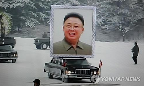 Chiếc xe chở di ảnh ông Kim Jong-il trong tang lễ chiều nay. Ảnh: Yonhap.