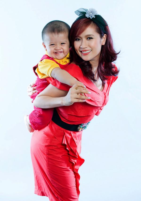 Cậu quý tử Cà Phê đã hơn 2 tuổi, chậm nói nhưng rất lém lỉnh hiếu động và còn biết cách tạo dáng dễ thương khi chụp ảnh cùng mẹ.