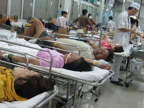 21 giờ ngày cuối năm, vừa bước vào khoa Cấp cứu, Bệnh viện Chợ Rẫy khung cảnh trước mắt tôi là hơn 35 giường bệnh gần như kín bệnh nhân, tràn ra cả lối đi. Và gần như suốt đêm 29 tết, trước cửa khoa Cấp cứu cứ hết lượt xe này đến lượt xe khác chuyển bệnh nhân vào.