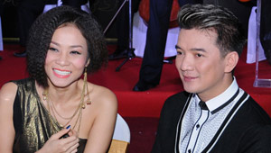 Ông hoàng nhạc nhẹ Đàm Vĩnh Hưng ngồi bên cạnh quán quân Bước nhảy Hoàn vũ Thu Minh (trái) tại đêm gala VIP Cebebreation Party.