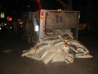 Xe tải lật làm một người trọng thương