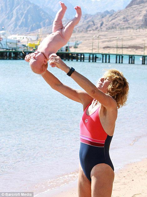 Những em bé sơ sinh được Lena Fokina tập luyện trên bãi biển trong chuyến thuyết giảng ở Anh.