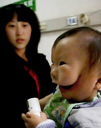 Cậu bé 14 tháng tuổi người Trung Quốc tên là Khang Khang mang dị tật hàm mặt. Quan sát bên ngoài, trông mặt bé như có "vết nứt" kéo dài từ miệng lên tới hai tai, trông như đang đeo chiếc mặt nạ quái dị. Điều an ủi duy nhất với gia đình bé là ngoài vẻ ngoài dị thường thì Khang Khang không hề xuất hiện triệu chứng ảnh hưởng trí lực nào.