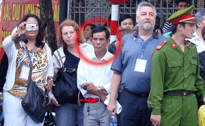 Đối tượng móc túi chuyên nghiệp (áo trắng đứng giữa ngài đại sứ và phu nhân) - Ảnh do đại sứ quán Venezuela cung cấp