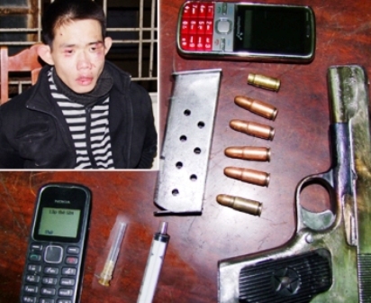 Khám nơi ở của anh ta, công an thu thêm một súng không có băng tiếp đạn, 3 bình xịt hơi cay, 5 dao kiếm các loại và nhiều tài liệu, vật chứng liên quan việc sử dụng, tàng trữ trái phép chất ma túy.