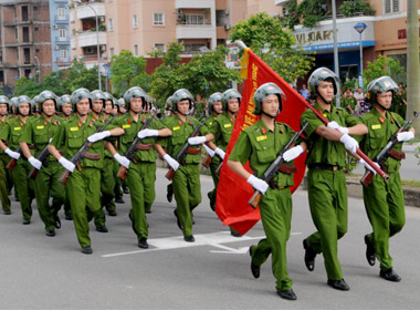 Công an Hà Nội duyệt binh đều tăm tắp trên đường phố