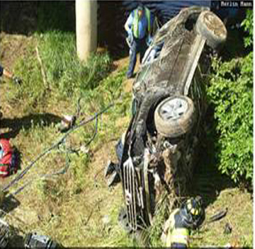 Hậu quả là, Toyota Highlander mất lái, lao đầu xuống con lạch Cedar Creek và bẹp dúm dó. Tài xế cùng xe gây tai nạn đã bỏ chạy khỏi hiện trường, nhưng sau đó đã bị cảnh sát tóm gọn.