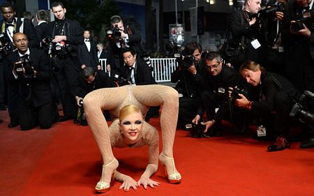 Một nghệ sĩ uốn dẻo trình diễn tại Liên hoan phim Cannes tại thành phố Cannes, Pháp.
